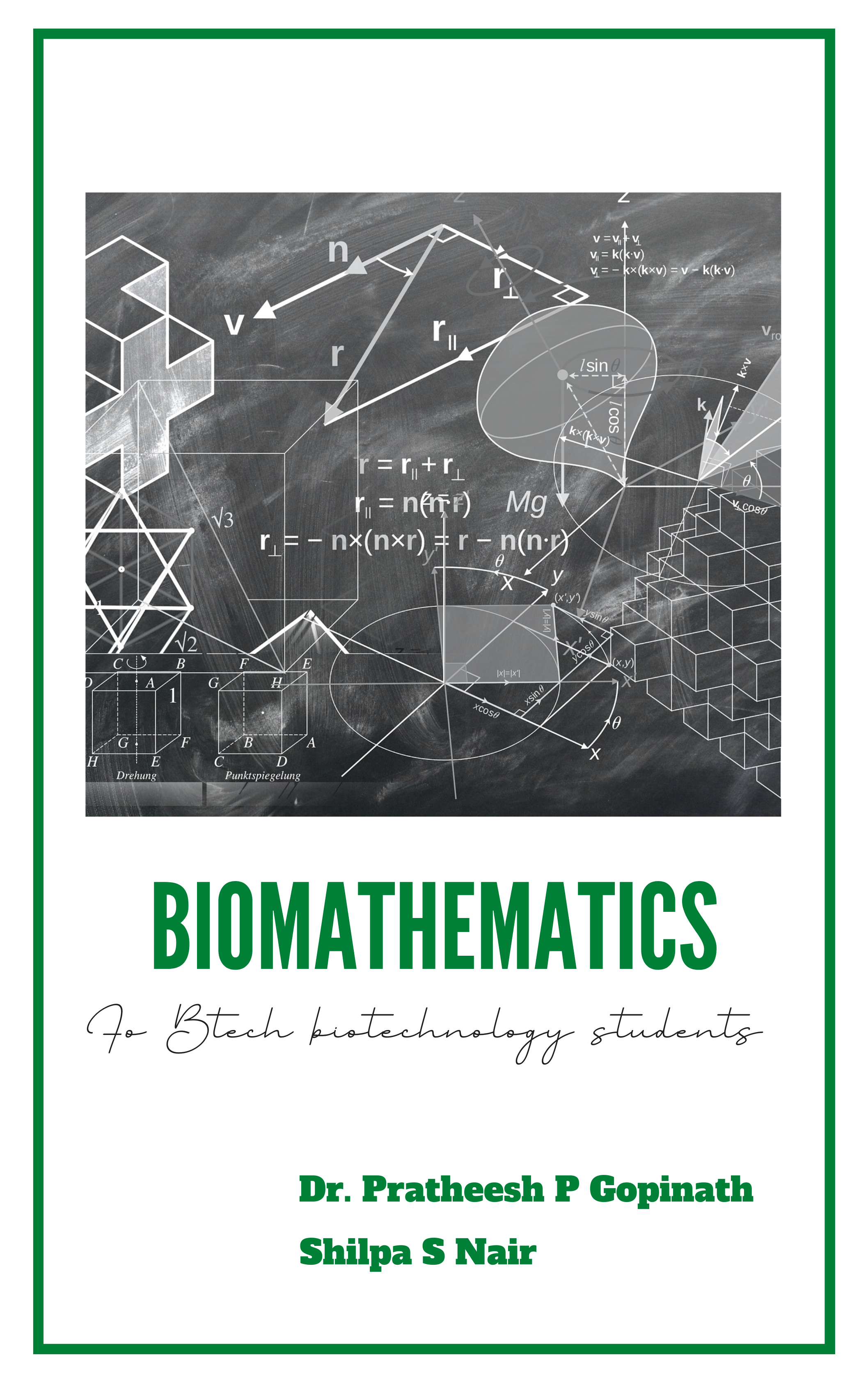 This book is a collection of all lecture notes covering the syllabus of Biomathematics course (BSTA 2104) in Btech Biotechnology Kerala Agricultural University